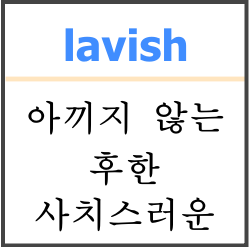 lavish 아끼지 않는, 후한, 사치스러운 ( /ˈlævɪʃ/ 래비쉬 )